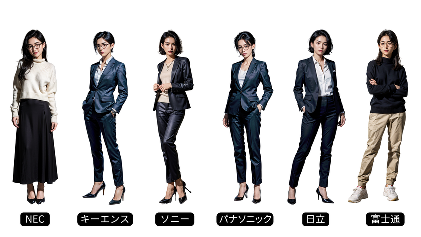 「総合商社の語学堪能キャリア女子」「広告代理店のセンス重視プロデューサー女子」など、各企業の特徴を象徴する擬人化キャラクターを掲載し、直感的に「その会社で働く女性像」を理解できるようにしています。