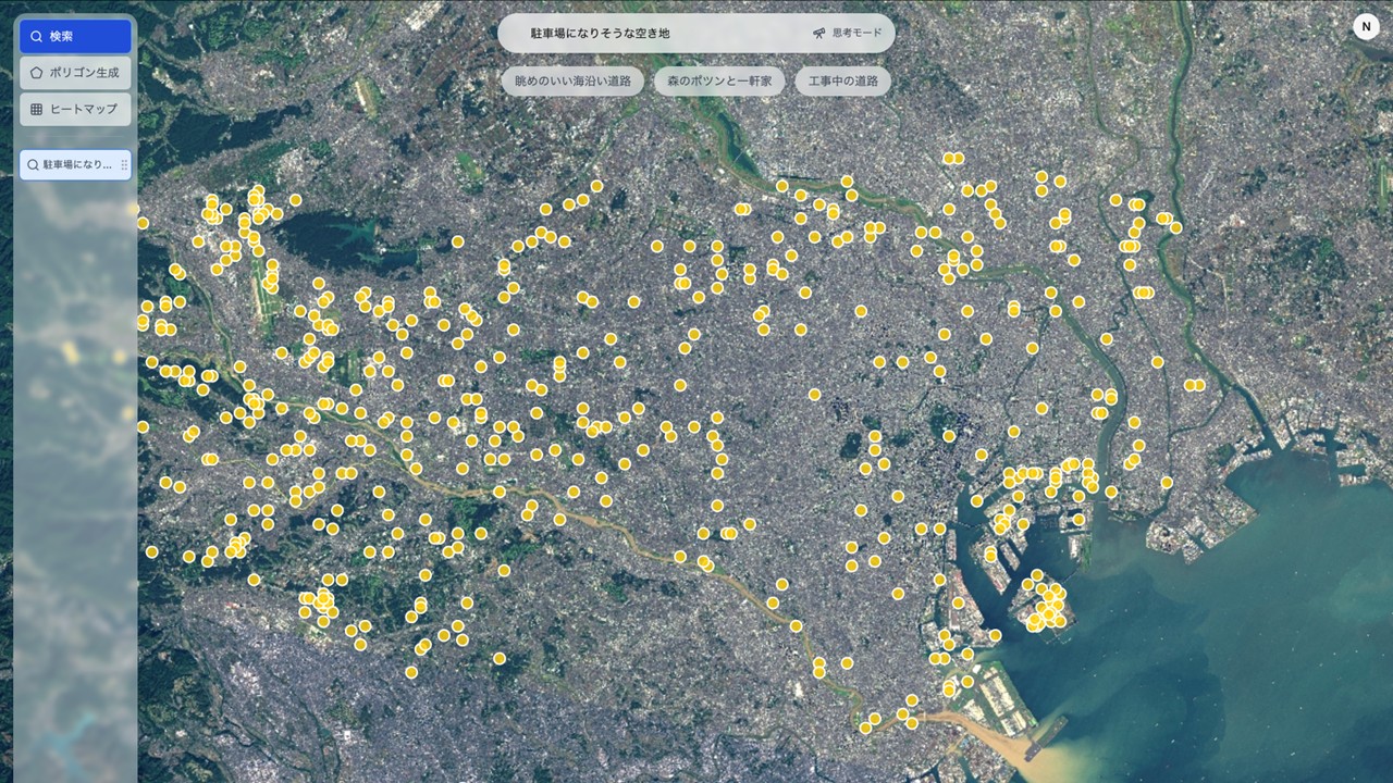 ※本ユースケースは、開発を開始した「地理空間ディープリサーチ機能」により実装可能となります。地理空間ディープリサーチ機能の開発完了は2026年初頭を予定しています。