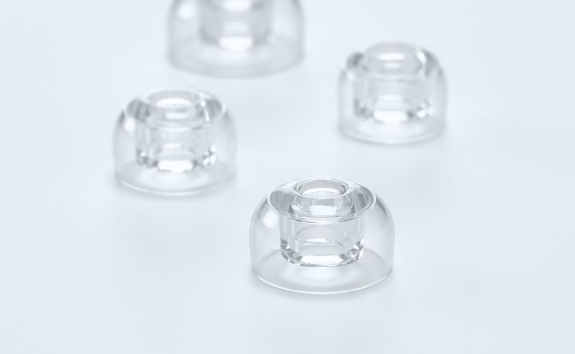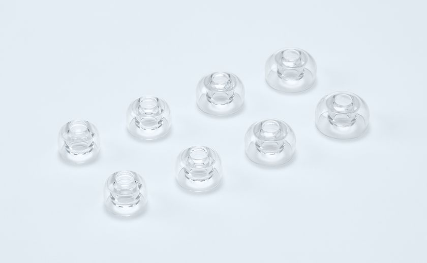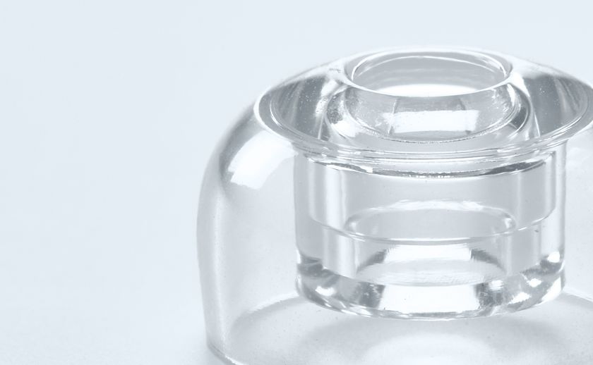 表面は極めてなめらかで肌への密着性が非常に高く、吸い付くような装着感が得られます。さらに、高い透明度と経年劣化の少なさで、イヤホンを美しく引き立てます。