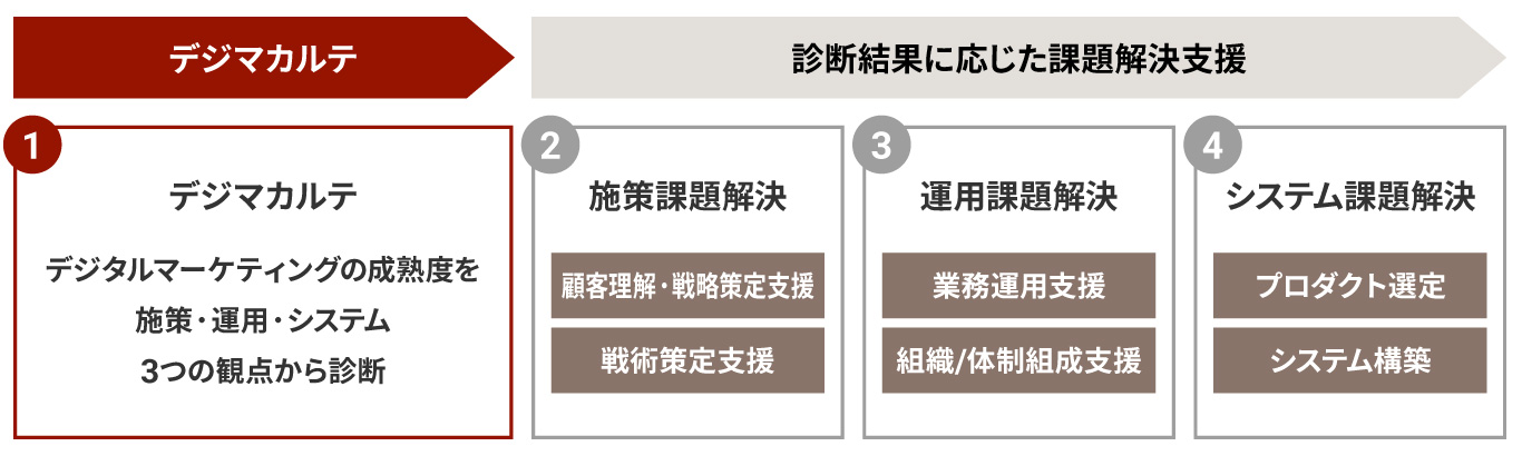 本サービスは、企業のデジタルマーケティングの現状を1~2か月程度の期間で診断します。