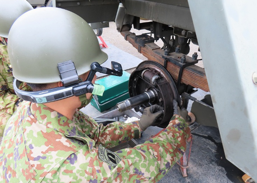 現地に派遣された若年隊員がボディカメラを装着し、遠隔地のベテラン隊員(上位技術者)がリアルタイムで現場の様子を確認しながら、整備作業の細部を指導・助言する運用を実現できるよう研究。