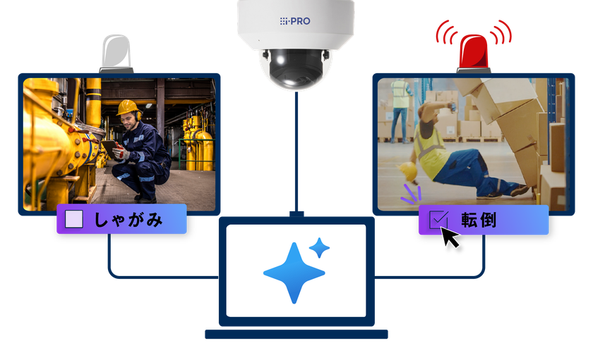 i-PRO株式会社製品のAIカメラ上で直接動作し、サーバー不要な転倒検知アプリ「転倒検知アプリ for i-PRO」は2025年の提供開始以来、様々な業種の企業にご利用いただいております。主に作業現場が抱える課題を解決するソリューションとして導入されていましたが、検知対象を転倒以外も検知したい、転倒に似た姿勢による検知を除外したいなど、幅広い状況に対応できる検知機能が求められていました。