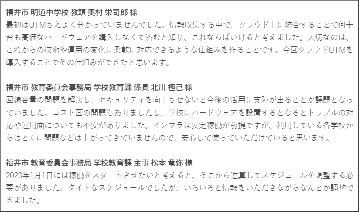 【導入事例:福井市教育委員会】SASEサービス「クラウドUTM」の導入で小中学校75校における回線帯域の柔軟な拡張性と強固なセキュリティを確保