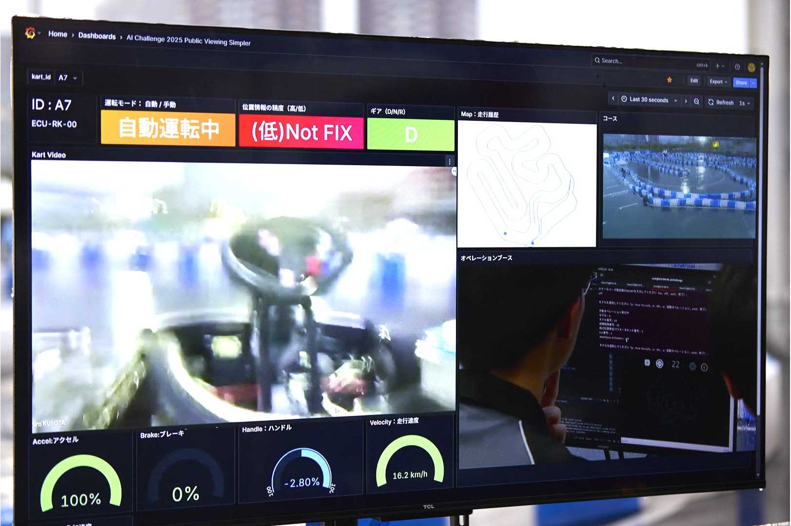 予選上位7チームが参加した一般クラスの決勝は、レーシングカートを自動運転で走らせラップタイムを競うもの。当日は本降りの雨となり、「シミュレーション上ではうまくいっていても、実機ではそうはいかない。雨ならさらに難しくなる」と小林さん。しかし、「スピンを起こす場面もありましたが、周回ごと、コーナーごとに挙動を見て、彼らは適切にパラメーターを変更していった。パニックを起こしてもおかしくないシーンで冷静に対応できたのは、十分な引き出しを準備して、どんな状況でもコントロールできるシステムを用意していたことに尽きると思います」と、羽部さんも手放しの賛辞を贈る内容で3位に入賞しました。