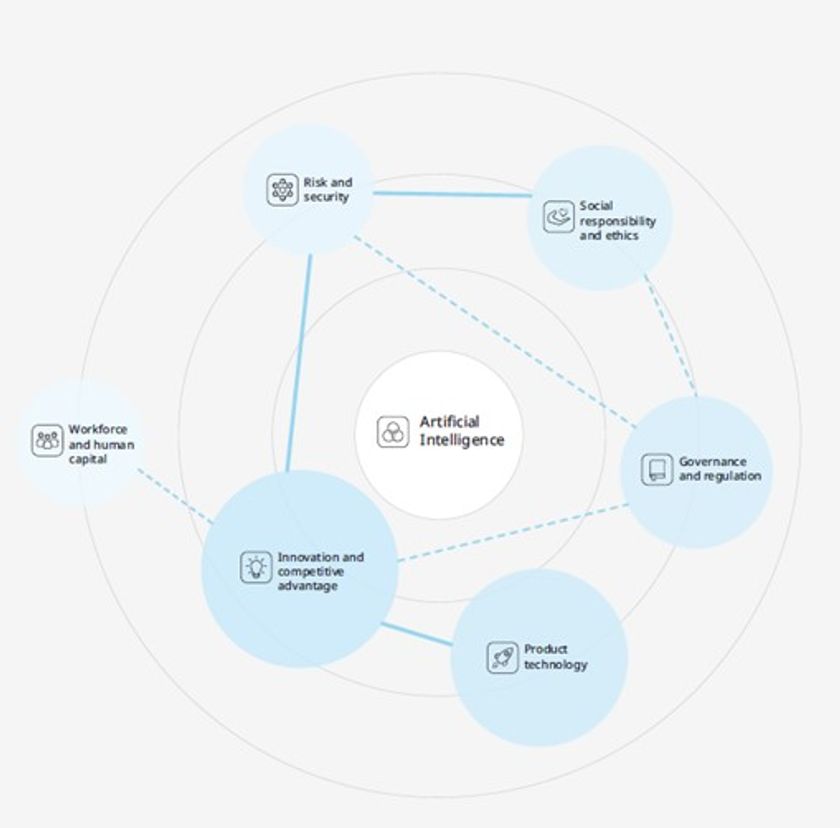 AI中心性モデルは、123の年次報告書において、各テーマがAIとどの程度関連しているかを示しています。