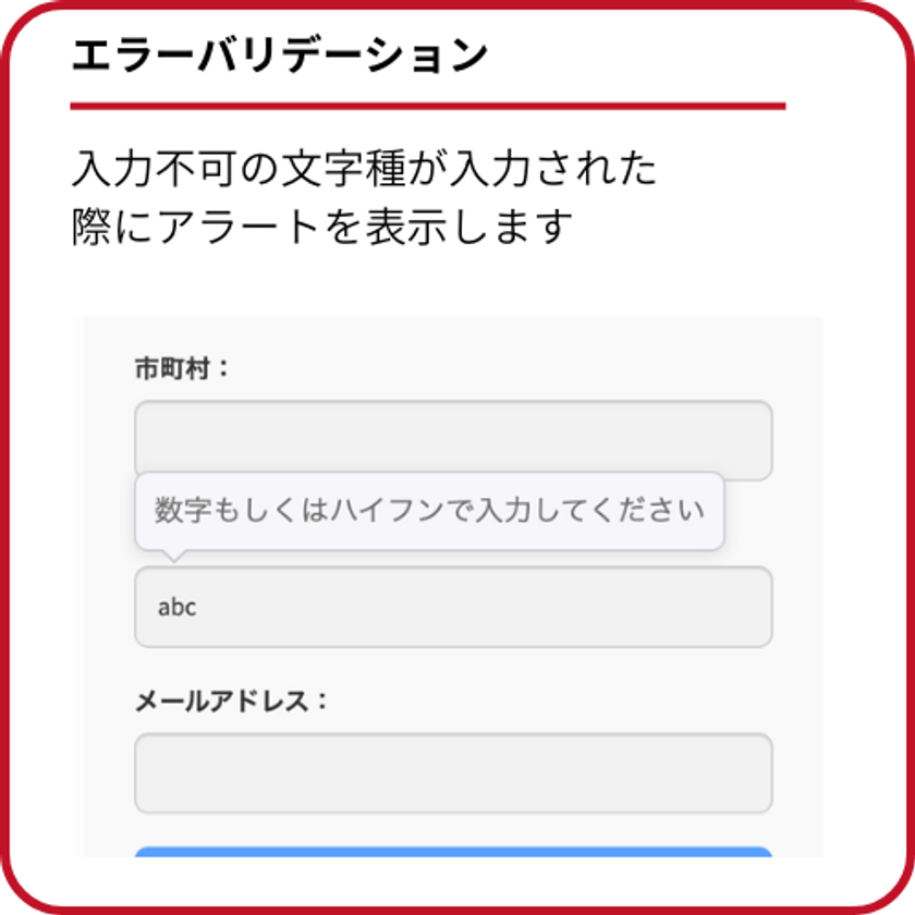 数字の入力項目に、アルファベットといった入力不可の文字種が入力された際にアラートを表示します。