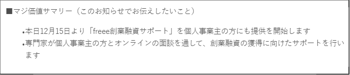 フリー株式会社(本社:東京都品川区、CEO:佐々木大輔、以下「freee」)は、グループ会社のフリー創業融資サポート株式会社が提供する「freee創業融資サポート」の対象を、本日12月15日より個人事業主にも拡大したことをお知らせします。