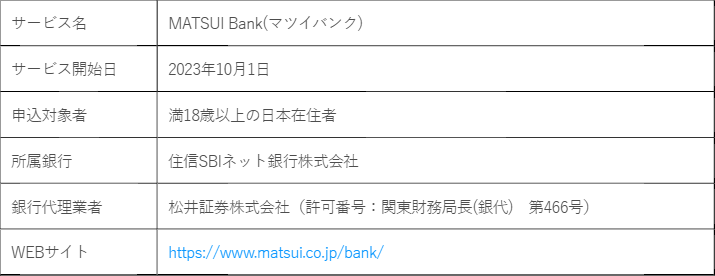 ※本プログラムの詳細は、プログラム開始後にMATSUI Bankサービスページにてご案内します。