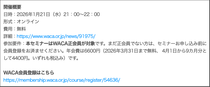 2026年1月21日(水)21:00〜22:00 【Flashセミナー】 Vol.135 世界のWordPress教育が日本へ ― 今、携わるチャンス!