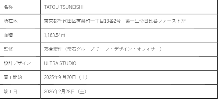 常石グループ株式会社(本社所在地:広島県福山市、代表者:代表取締役社長 神原勝成)は、東京・日比谷に新拠点「TATOU TSUNEISHI」を開設し、3月9日(月)より順次業務を開始いたします。