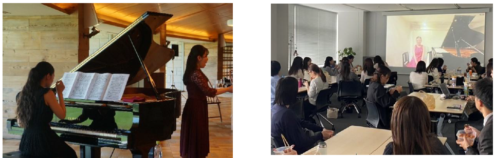 これまでに、アーティスティックスイミングで世界大会に出場したスポーツ選手やチャリティーボーカリスト、ヴァイオリニスト、ピアニスト、宇宙工学研究者、超微細マイクロニードル開発研究者など、さまざまな分野で活躍している若者たちを支援いたしました。新型コロナウイルスの影響が深刻であった時期には、演奏機会の減少が大きな課題となりましたが、表現活動への意欲喚起につなげることを目的に、社員向けコンサートを開催するなど、独自の支援に取り組んでまいりました。