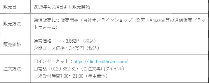 DIC株式会社(本社:東京都中央区、社長執行役員:池田尚志)は、睡眠の質(眠りの深さ)を向上する*1機能性表示食品「ネルエイド」 を2026年4月24日より、DICオンラインショップなどで販売開始します。