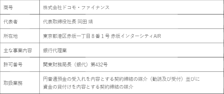 住信SBIネット銀行株式会社(本社:東京都港区、代表取締役社長(CEO):円山 法昭、以下「住信SBIネット銀行」)と株式会社ドコモ・ファイナンス(本社:東京都港区、代表取締役社長:岡田 靖、以下「ドコモ・ファイナンス」)は、ドコモグループ連携強化に向けた取組みの一環として、住信SBIネット銀行を所属銀行とする銀行代理業委託契約を締結したことをお知らせいたします。