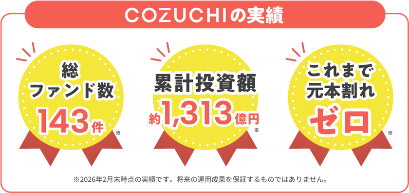 LAETOLI株式会社(ラエトリ/本社:東京都港区/代表取締役CEO:武藤 弥)が運営する、不動産投資クラウドファンディングサービス「COZUCHI(コヅチ)」は、2026年2月末時点で、計124件/約1,067億円のファンドをいずれも元本毀損なく無事に運用終了したことをご報告いたします。