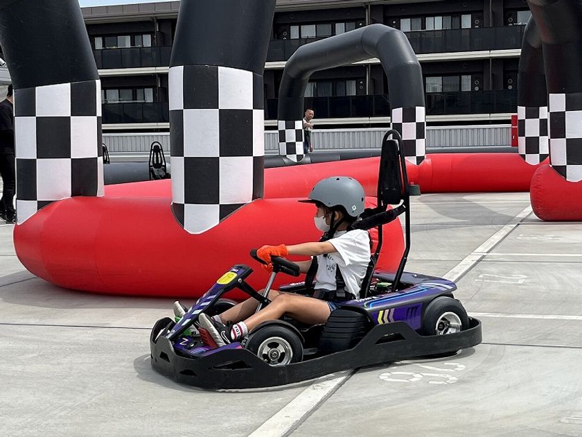 電動車SUV体験のコーナーでは、インストラクターが運転する新型bZ4Xや人気のトヨタSUVに同乗して急勾配を走破し、オフロード性能をリアルに体感することができます。EVキッズカートでは、EVを動力としたお子様用カートで会場内のコースを走行することができます。