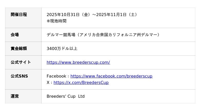 「ブリーダーズカップ」開催概要