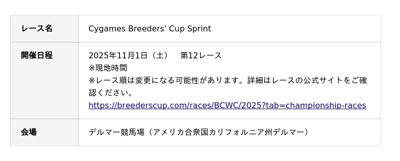 ■冠レース「Cygames Breeders' Cup Sprint」を11月1日に開催