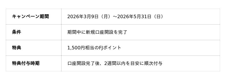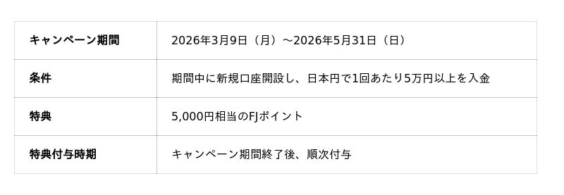 ※特典(5,000円相当のFJポイント)の付与は、お一人様1回限りです