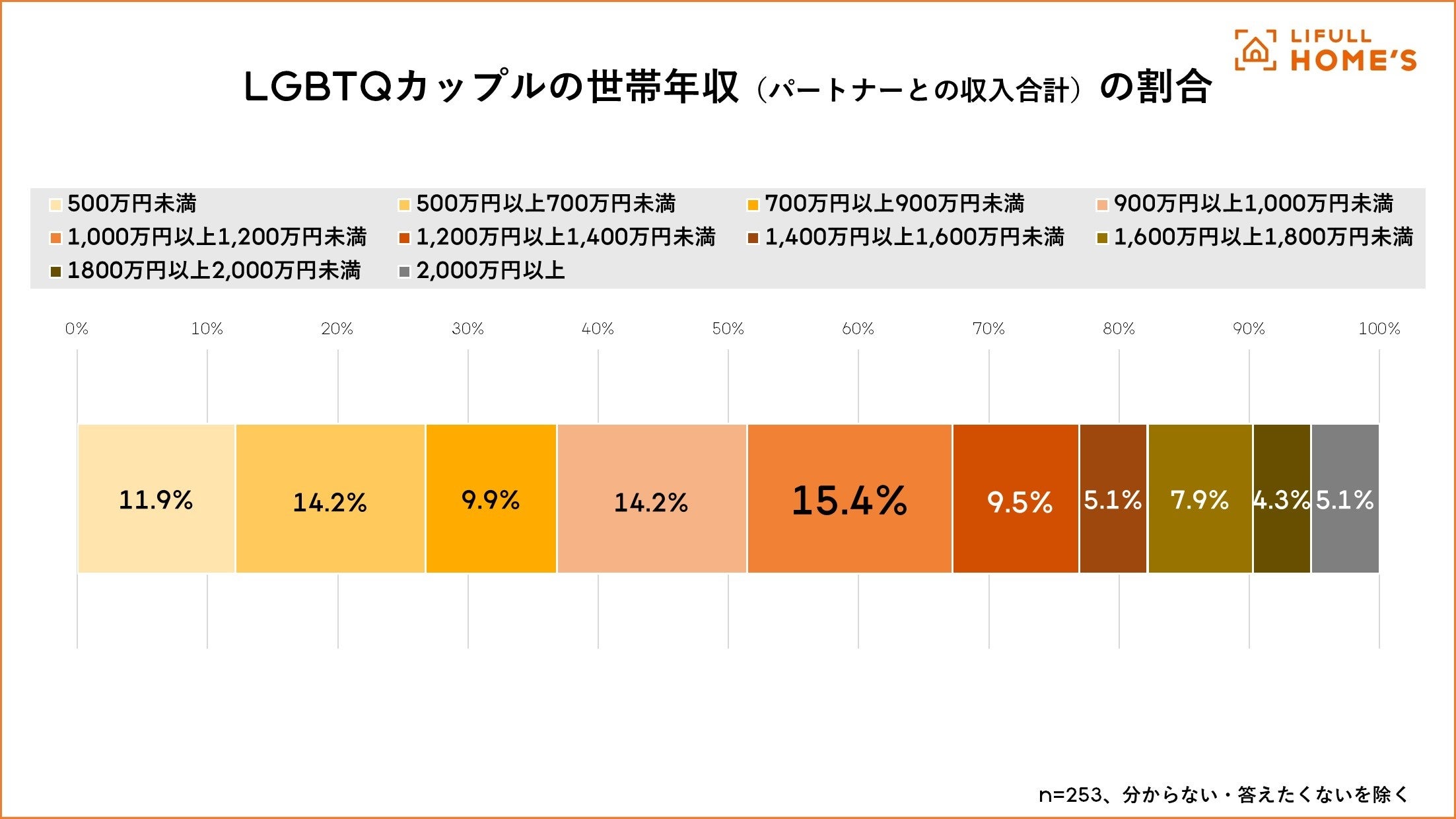 今回の調査では、LGBTQ当事者の住宅購入への高い意欲と、それに反する“機会損失”の存在が明らかになりました。LGBTQカップルの世帯年収で最も多い回答は「1,000万円以上1,200万円未満」でした。厚生労働省の調査※では、世帯の平均所得金額は536万円であることから7割以上のLGBTQカップルは経済的な基盤を持っていることがうかがえます。これは二人ともがフルタイム勤務であることや本調査の対象が首都圏在住のため賃金水準が高いことから高年収世帯の割合を押し上げている要因と考えられます。