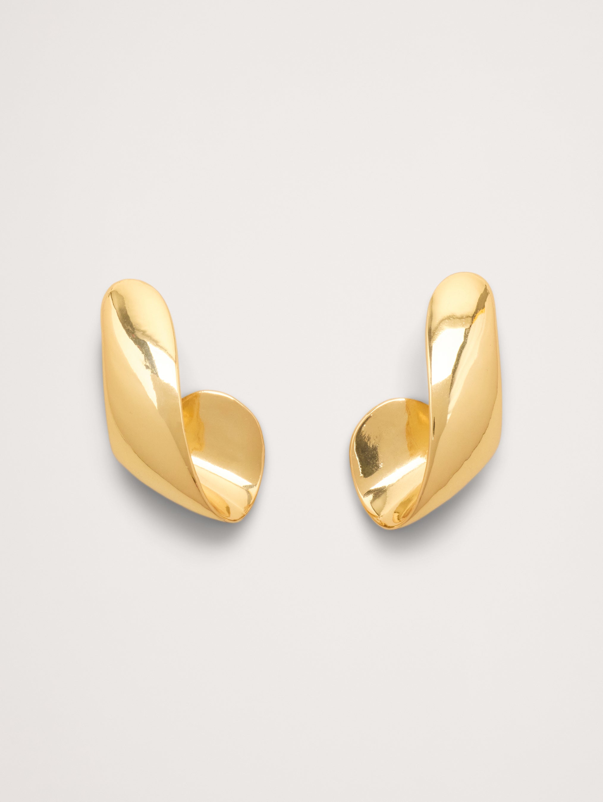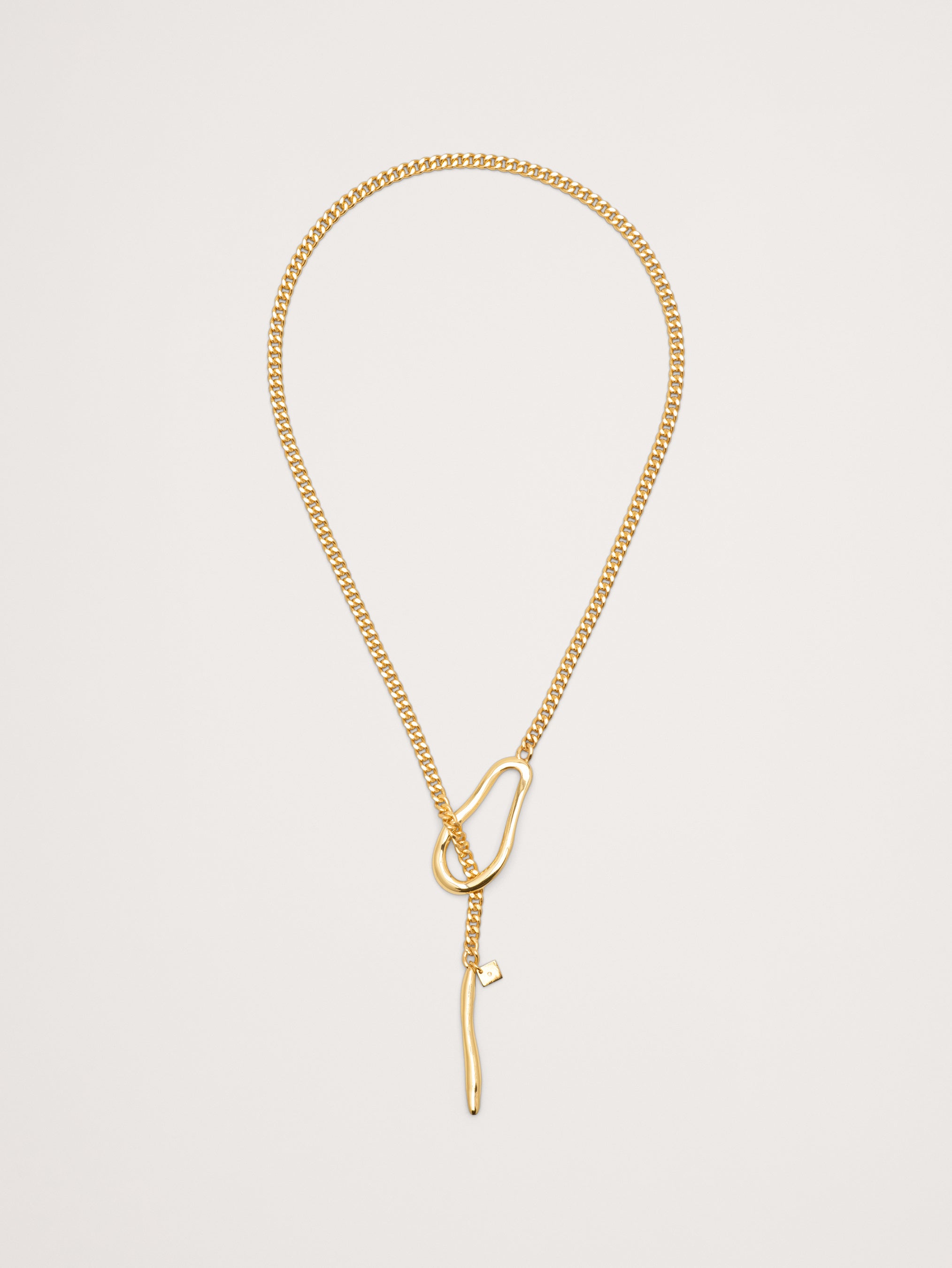 - ミニ オーバル リンクチェーン ネックレス(16,000円):アクセントになる程よいボルーム感のチェーンネックレス。- アブストラクト オーバル ドロップ ネックレス(14,000円):Y字シルエットが印象的なラリエットネックレス。- リボン ダングル ピアス(12,000円):彫刻的なフォルムが印象的なピアス。- バブル フープ ピアス(6,000円):シンプルでありながら、存在感のあるフープピアス。*ジュエリーはすべて14Kゴールドのメッキを施したブラスを使用しています