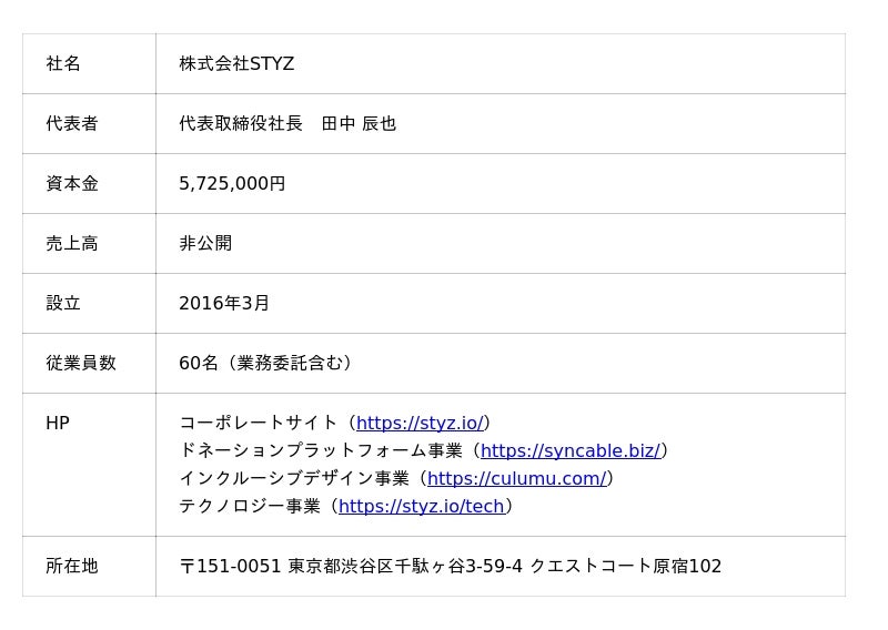 - ドネーションプラットフォーム事業(Syncable):非営利セクターへの新たな資金流入を促進。- インクルーシブデザイン事業(CULUMU):企業課題と社会課題を同時に解決。- テクノロジー事業(STYZ Tech):次世代技術による人間中心の体験創造。