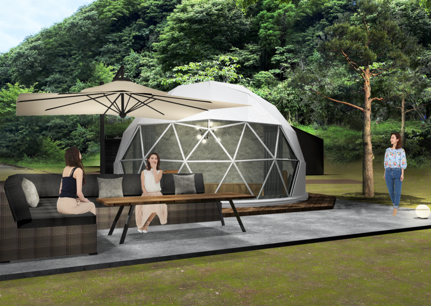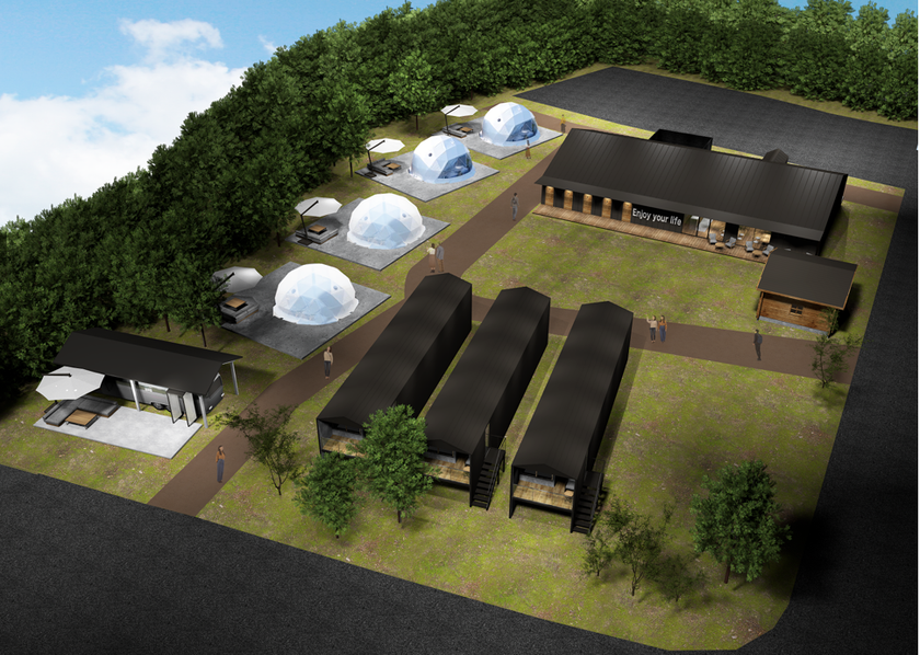 約300m2のメイン棟には、フロント・ラウンジ・レストラン・グランピング用サニタリーを併設。