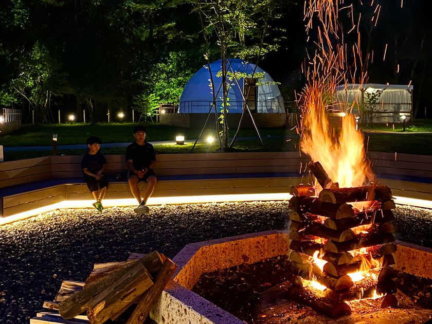 ・夜はキャンプファイヤーでゆったりとした時間を過ごせる(※画像参照)