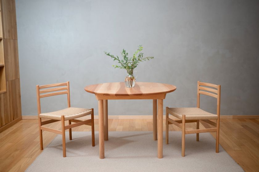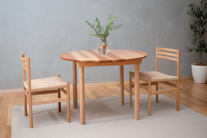 先行販売中の『Egretチェア』は、アサダ材のフレームとペーパーコードを組み合わせた椅子で、しなやかな座り心地と軽やかな佇まいが魅力です。今回登場する『Egret丸テーブル』と合わせることで、シリーズとして統一感のある空間をお楽しみいただけます。