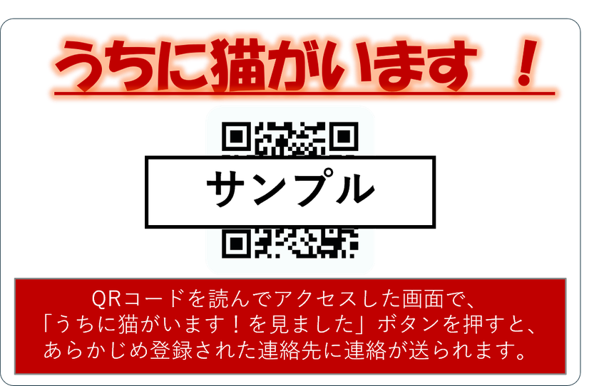 カードに印刷された二次元コードから、家に猫がいることを第三者に伝えられ、緊急連絡先とつながることが可能となります。