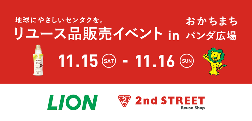 ライオン株式会社(本社:東京都台東区)は、株式会社ゲオホールディングス(本社:愛知県名古屋市中区)のグループ会社である株式会社セカンドストリート(本社:愛知県名古屋市中区)と共同で、2025年11月15日(土)~11月16日(日)、御徒町南口駅前広場(おかちまちパンダ広場)にて、「地球にやさしいセンタクを。」リユース品販売イベントを開催します。