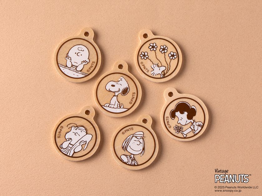 「SNOOPY PURE&NATURAL PRODUCTS」シリーズには、ランダムで6種類のウッドチャームが付属します。