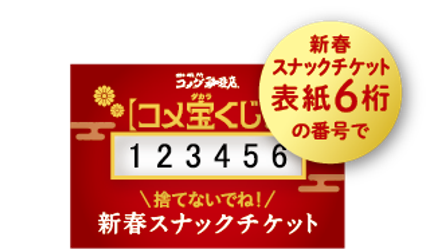 今年も抽選で景品が当たる“コメ宝くじ”をご用意しました。福袋に入っている「新春スナックチケット」の表紙に記載された6ケタの通し番号で抽選を行い、合計2,000名様に景品をプレゼント。