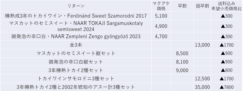 ■メインのクリスマス向けトカイワインのリターンはさまざま