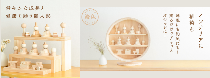 人と木(ひととき)のブランドで木の雛人形・五月人形、木製品の絵本棚の販売を行う株式会社WiNEEDS HOLDINGS(読み:ウィニーズホールディングス、所在地:広島県広島市、代表取締役社長:尾田 雅史、以下:人と木)は、木の雛人形「クムキシリーズ 色~いろ~」の新作として、淡い色味の木材を使用した「淡色~あわいろ~」を発売しました。2026年1月中のお届けを予定しております。