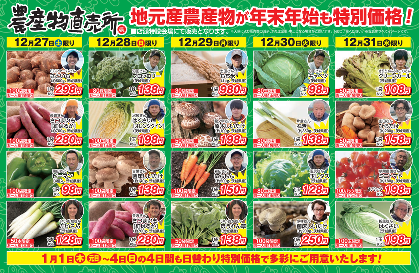 ※年始もお客様に喜んでいただけるよう、生産者様の真心こもった新鮮とれたてお野菜を特別価格にて、ご用意させていただいております!