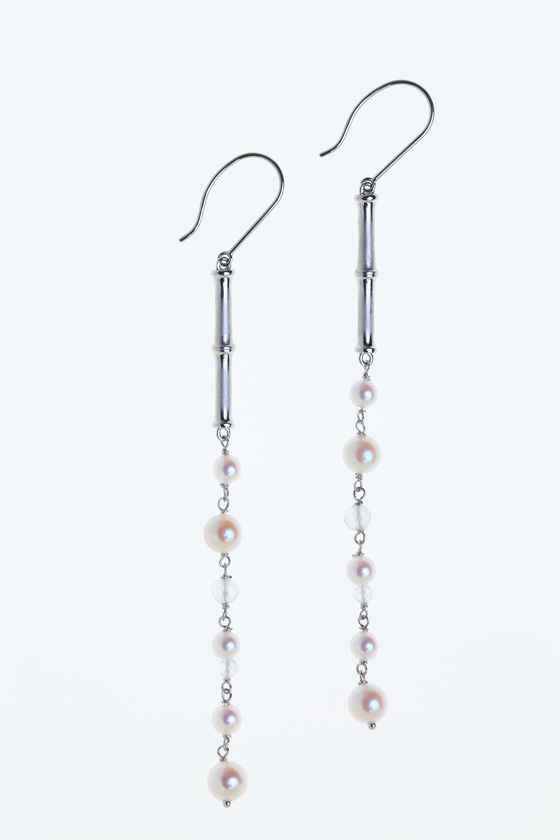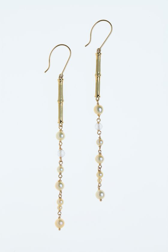 宝飾職人によりリアルに再現された竹モチーフに、同じく四国で生産されている愛媛県宇和島産あこや真珠を合わせ、竹林の「光」と「水」のストーリーをデザインしたピアスやネックレスにしました。