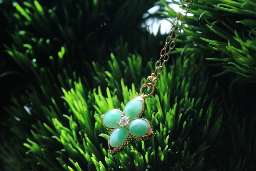 ■日本の国石・糸魚川翡翠を使い、瀬戸内海の煌めきと、日本の伝統文様の「花菱」に見立てた新作ネックレス「HANABISHI」