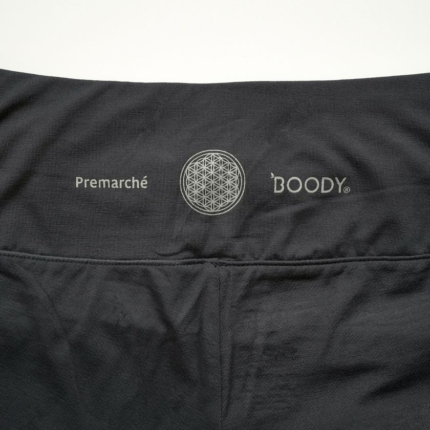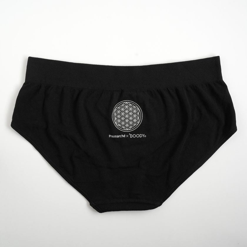 高い機能性と環境への配慮を両立したBOODYの製品に、プレマルシェのシンボルである生命の象徴「フラワーオブライフ」をプリント。まるで「第二の肌」のような、心地よい着用感を目指しました。