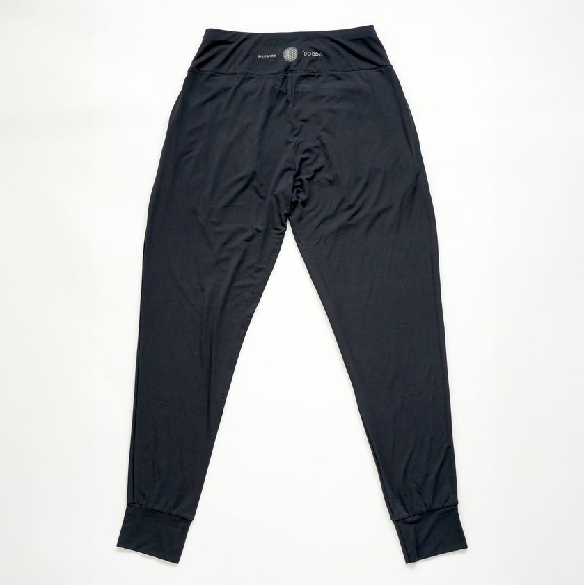 伸縮性に優れた竹由来素材を使用したルームパンツ。ヒップのドレープから裾にかけて美しくシェイプされたテーパードシルエットで、リラックス感とスタイリッシュさを両立しました。肌触りのなめらかさは抜群!自宅でのくつろぎ時間はもちろん、ヨガウェアやスポーツウェアとしてもおすすめです。仙骨付近には神聖幾何学模様の「フラワーオブライフ」をプリントしています。