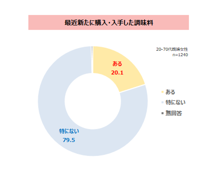 最近新たに購入・入手した調味料があるかどうかを調査したところ、2割が「ある」と回答した。