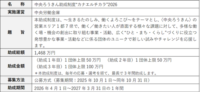 【中央ろうきん助成制度“カナエルチカラ”2026実施概要】