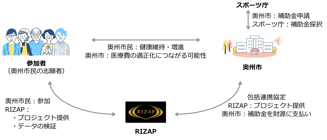 店舗・人材・システムやサービス等、RIZAPの多様な経営資産をアレンジすることで、地域住民の生活習慣がより健康的なものへと変化し、自治体においては医療費の適正化にも繋がっていきます。住民・自治体・RIZAPの三者が連携することで、持続可能な社会の実現を目指してまいります。