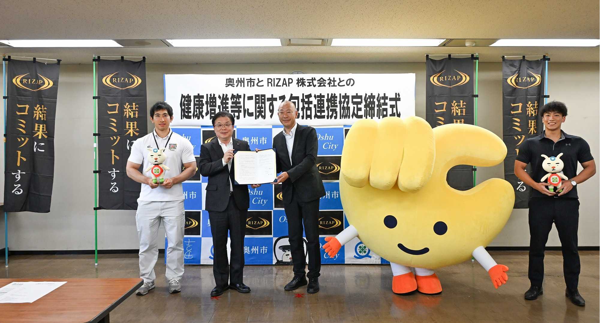 RIZAPグループ株式会社(代表取締役社長:瀬戸 健、本社:東京都新宿区)の連結子会社であるRIZAP株式会社(以下、RIZAP)は岩手県奥州市(市長:倉成 淳)と健康増進等に関する包括連携協定(以下、本協定)を2025年8月1日に締結したことをお知らせいたします。本協定は、奥州市が掲げる「奥州市未来羅針盤図」プロジェクトの一環として、市民一人ひとりが将来にわたって自分らしく健やかに暮らせる、持続可能なまちづくりを目的としています。RIZAPはこの協定を通じて、奥州市と協働し、地域の健康課題の解決に取組んでまいります。