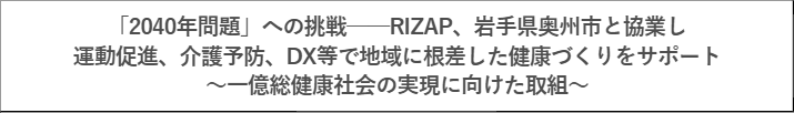 「2040年問題」への挑戦──RIZAP、岩手県奥州市と協業し