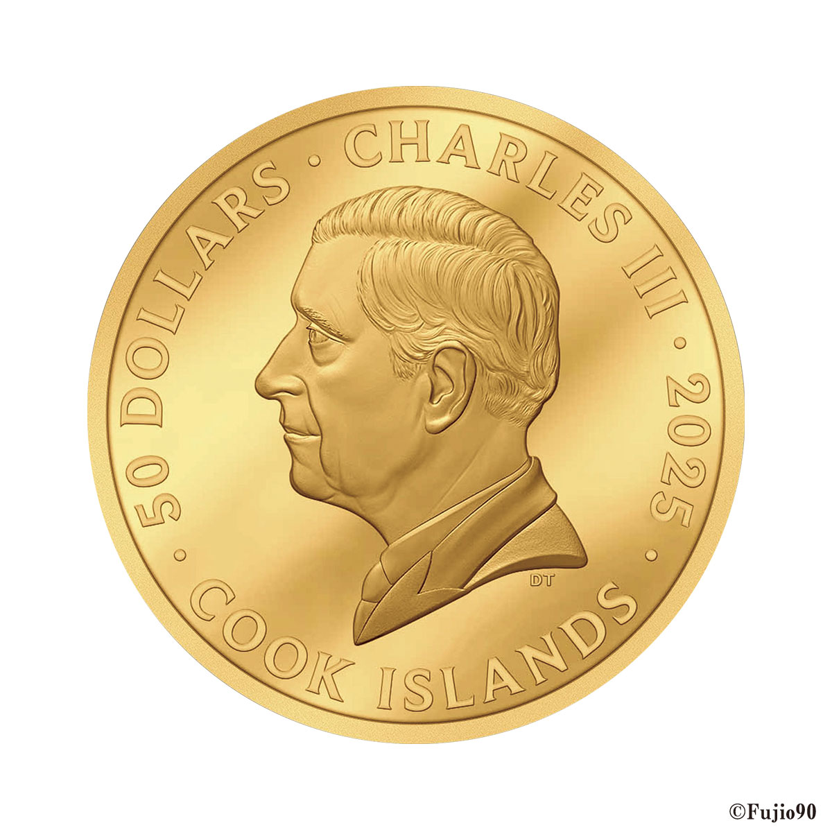 また反対側には、金貨の発行国クック諸島の元首チャールズ3世(英国国王)の公式肖像が刻まれています。
