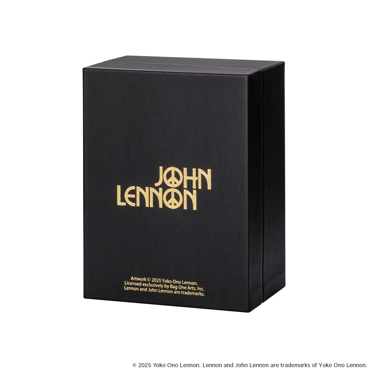 腕時計は、ジョン・レノンのロゴが箔押しされた特製ボックスに収納。ボックスの内側には、ギターを演奏するジョン・レノンのフォトがセットされています。
