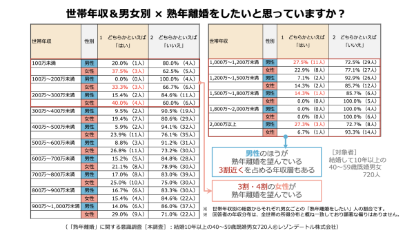 世帯年収が高いからといって「熟年離婚を望まない」とは限らないことがうかがえます。