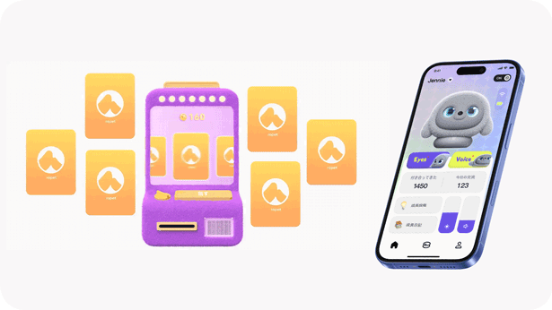 専用のアプリと連動することで、アプリ内のガチャで手に入れた瞳の色や声のトーンなどを自由にカスタマイズできます。