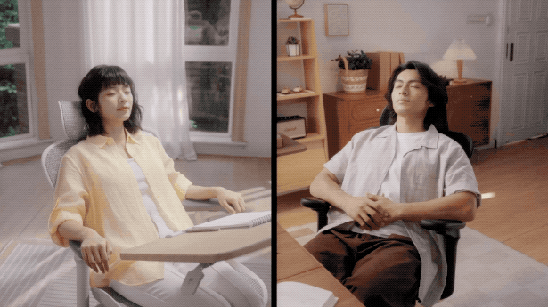 オフィスチェアC300Sの背もたれが思考を支え、アームレストが疲れを優しく和らげる。デスクD02は軽やかに移動できるので、窓際で朝日を浴びたり、リクライニングでアイデアが浮かぶ空間に。場所を変える小さな冒険で、毎日に新しいひらめきを。