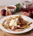 ご注文毎に焼き上げるクレープにスパイス香るシナモンシュガーを振り、キャラメリゼいちじく、自家製塩キャラメルソース、マスカルポーネアイスクリーム、紅茶のクランブルクッキーをトッピングしました。